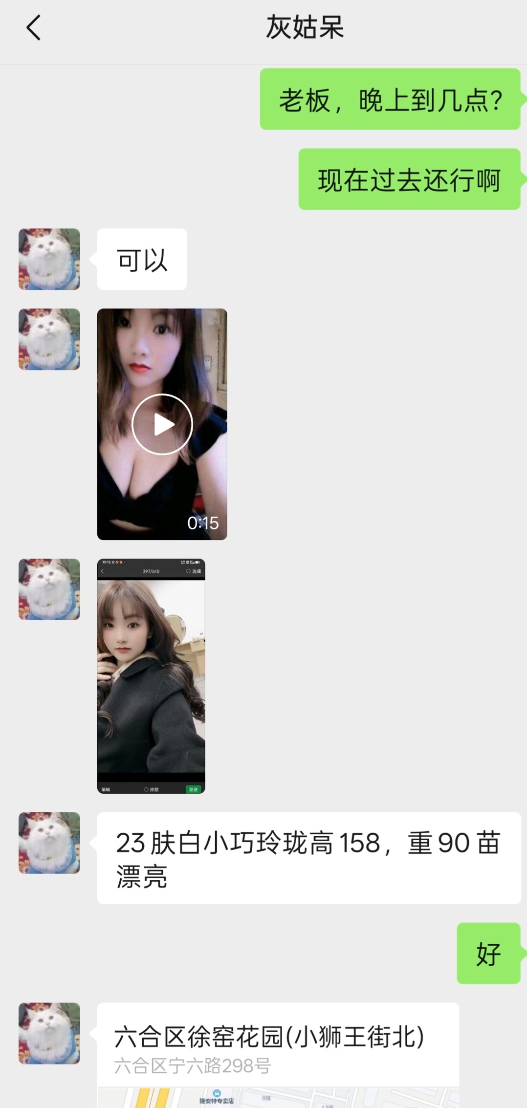微信是代聊的,观察了几天,不定期有新茶。今天老板发了个新茶还不错,就约时间估计去了,遥控上门后,一个大爷开的门,大爷好像是看场子的。给我指妹子的房间进去。人照有4分相似,照片是之前的,个头160左右,熊最起码C+;